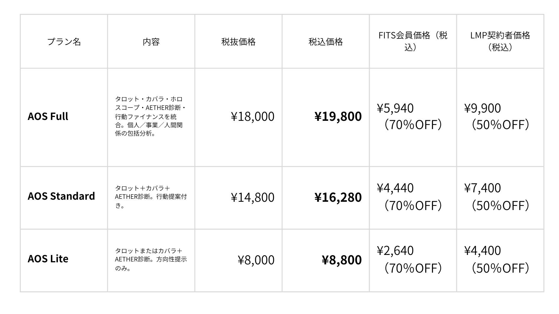 💠AOS(AETHER ORACLE SYSTEM)料金表